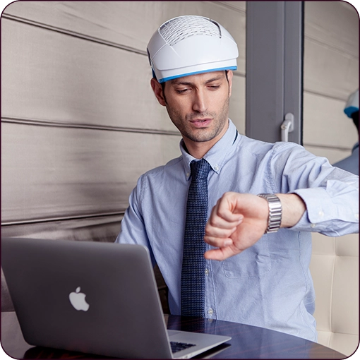 The Theradome helmet is completely hands-free and wireless, allowing you to go about your activities without interruption.